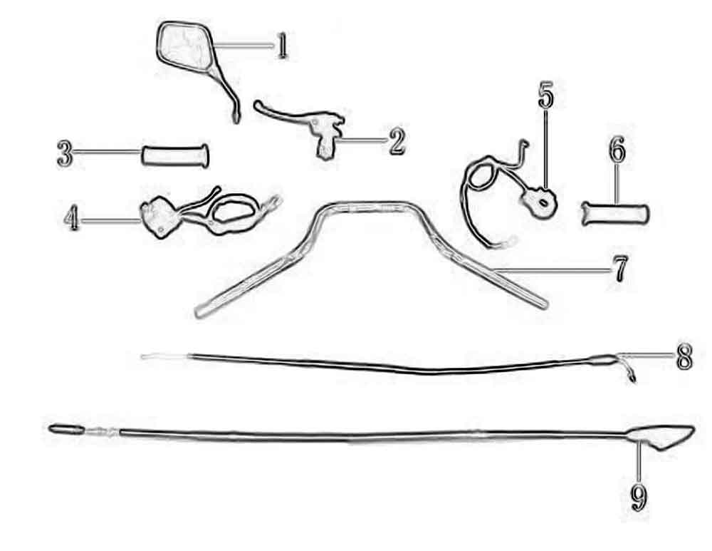 Despiece de Tubo de Manillar, bloque de interruptor, empuñadura izquierda y derecha, manivela de embrague, espejo Retrovisor