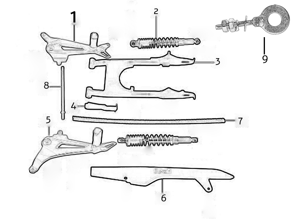 Horquilla plana trasera Amortiguador trasero Cadena Caja de cadena